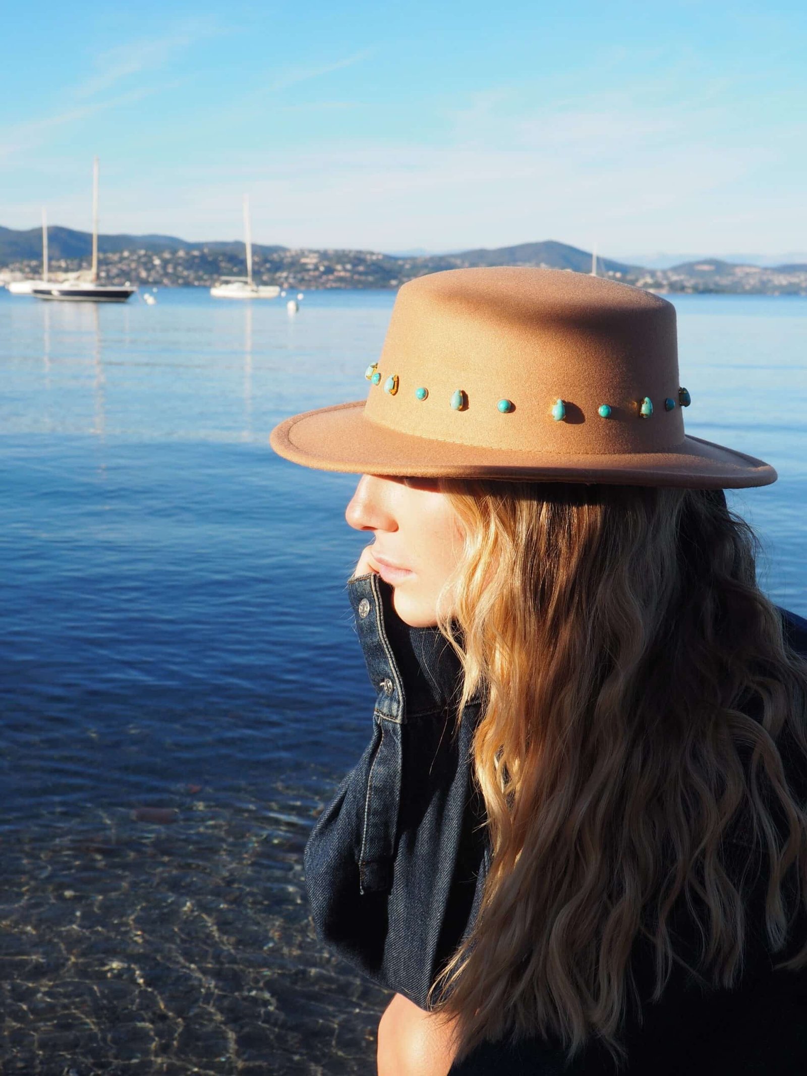 Né au bord de la mer, façonné dans une douce feutrine camel, ce chapeau capture l’esprit des hivers à Saint-Tropez.
