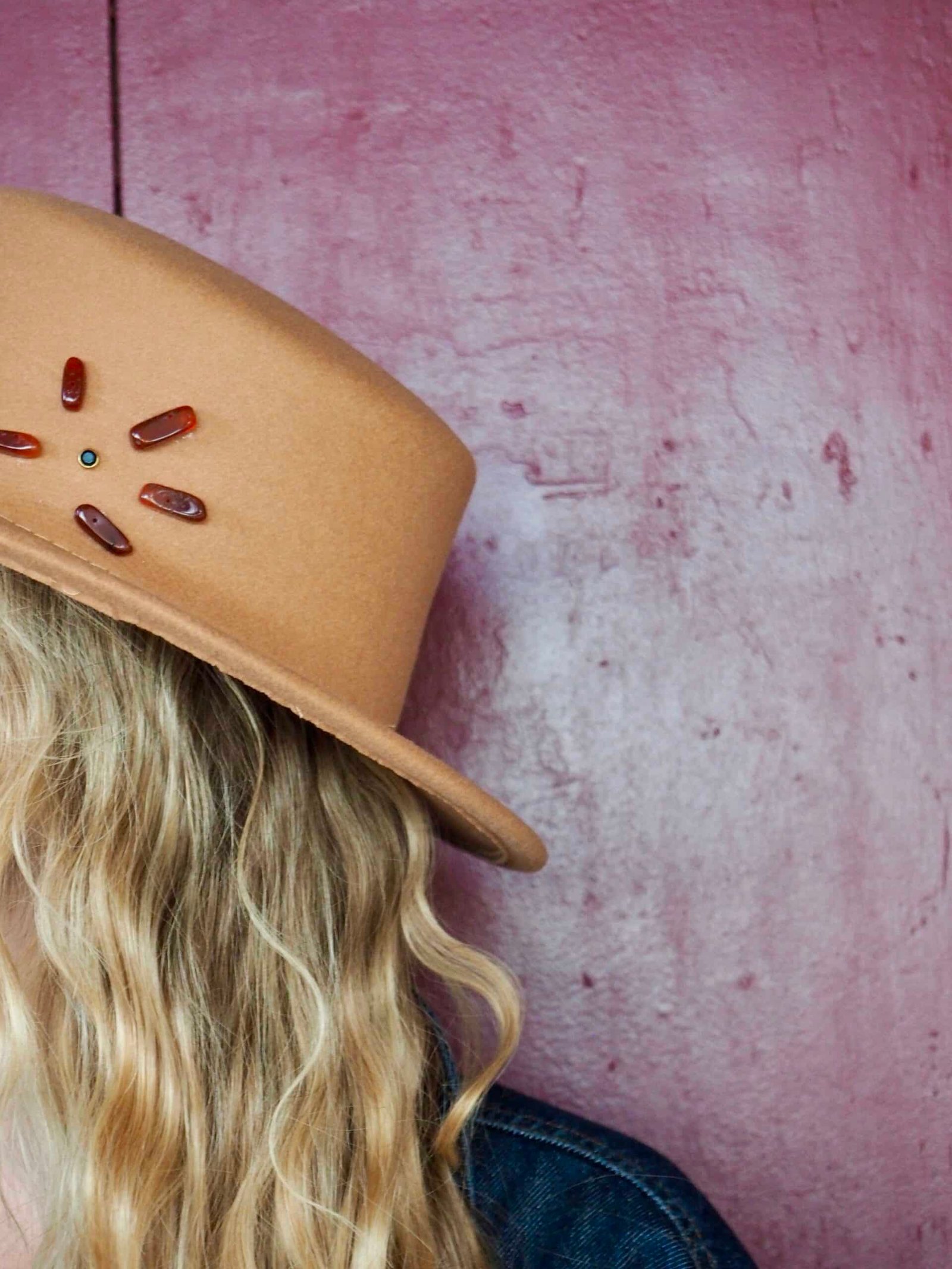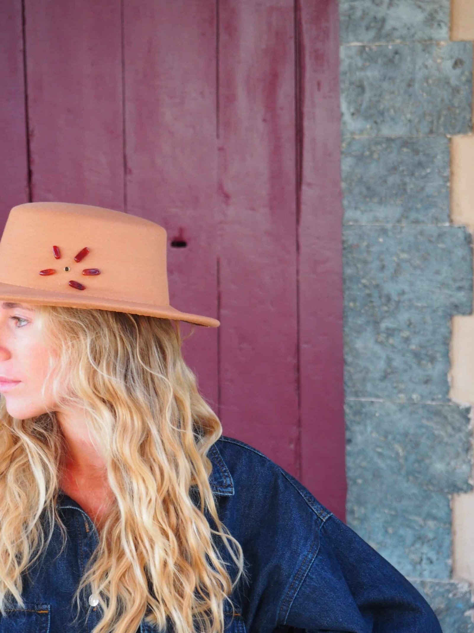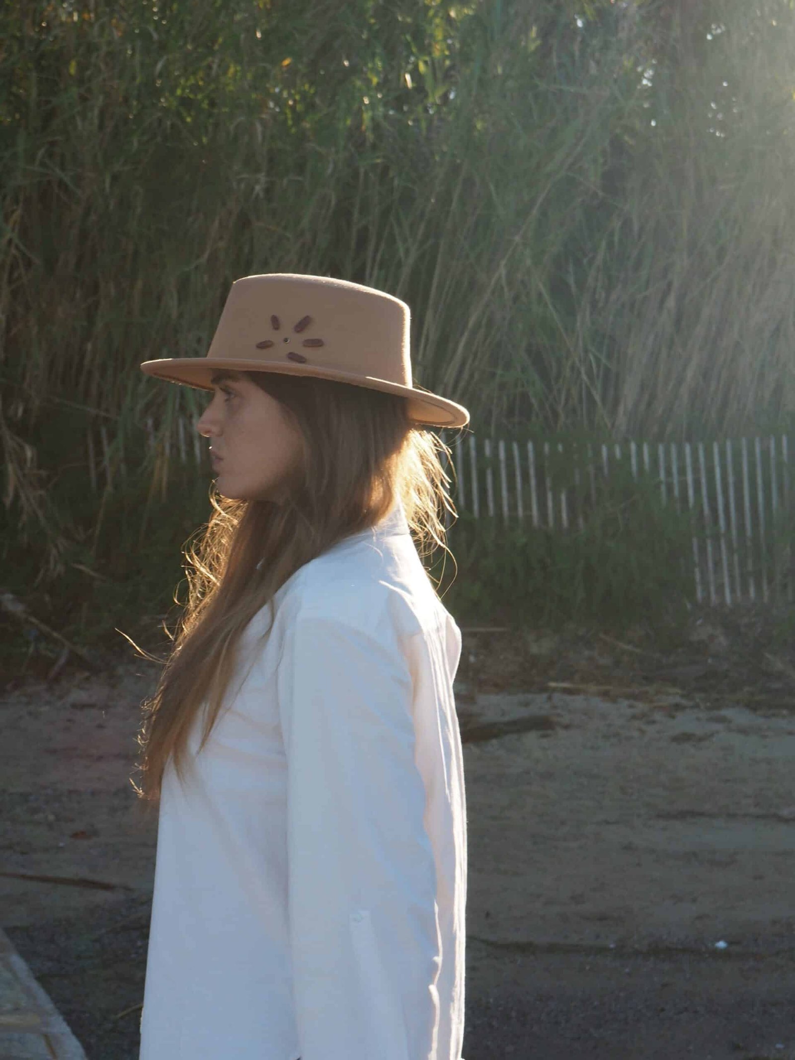Né au bord de la mer, façonné dans une douce feutrine camel, ce chapeau capture l’esprit des hivers à Saint-Tropez.